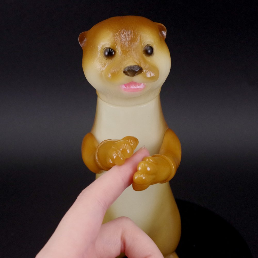 今までに墓場の画廊で紹介したシリーズは身体が人間の姿にデフォルメされていたが今回は服を脱ぎ捨て、しなやかな身体のラインや、特徴的な長い手など本物のカワウソの様なフォルムで、特に手首の可動によりおねだりポーズなどの動きも可能になっている。