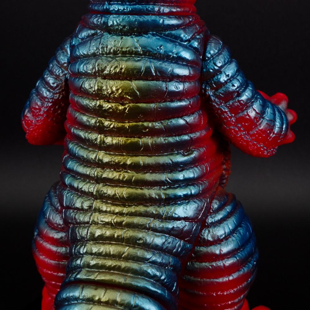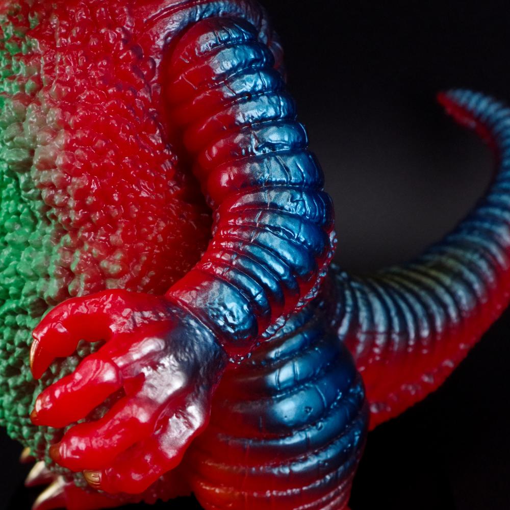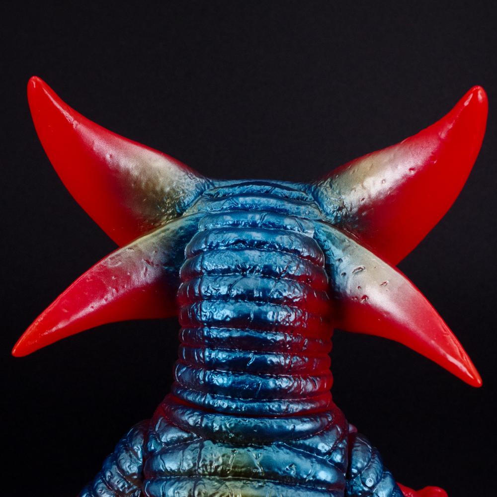 頭部の上下に生えた三日月型の大角をはじめ、シャープな顔つきや蛇腹状の表皮に至るまで「ゴモラ」とは似て非なる姿を忠実に再現したこだわりは必見だ。