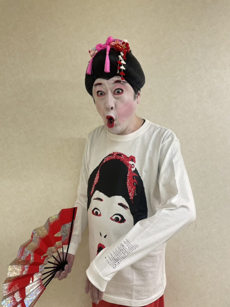 顔面白塗りの狂気!狂い咲き芸人コウメ太夫の驚きの白さをTシャツで完全再現!超チクショー級のインパクトで贈る顔面ロングスリーブTシャツが登場!フロントにはチクショーの絶叫が聴こえる顔面プリントに、左袖にはコウメ太夫おなじみのネタのカンペを再現!これさえ着れば、いつでもコウメ日記が再現出来る!?
