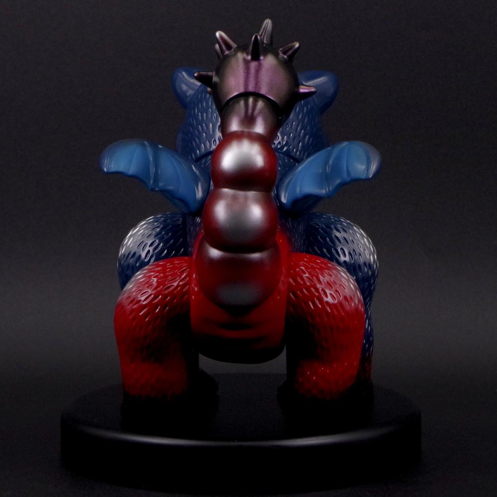 民芸品のような懐かしさを感じさせる今作は、彫刻刀で作り込まれた細やかな毛並みの流れやモーニングスターのような刺々しい尻尾の造形に、同社のソフビに対しての妥協なき姿勢が感じ取れる逸品だ。