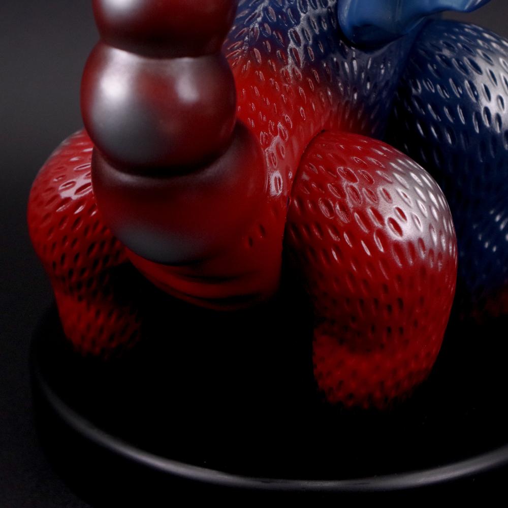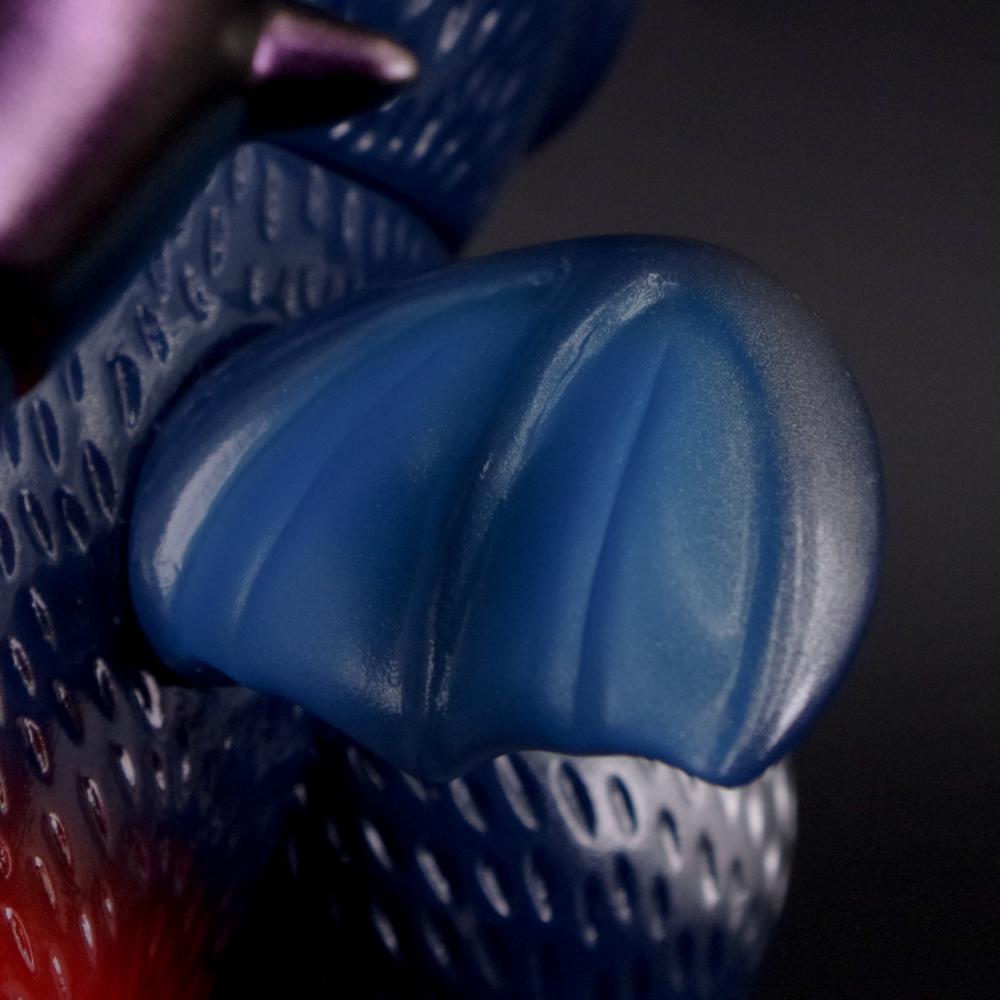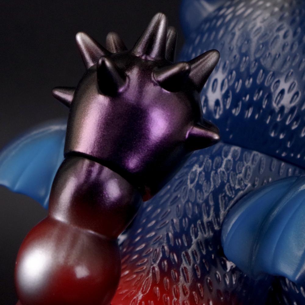 キメラならではの数種の動物の組み合わせと、深い紺色と深紅のツートンカラーにシルバーのポイントが映える色使いによりシンプルながらも強烈な存在感を放つ仕上がりとなっている。