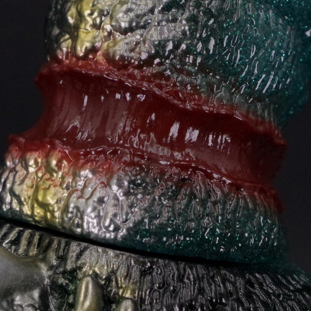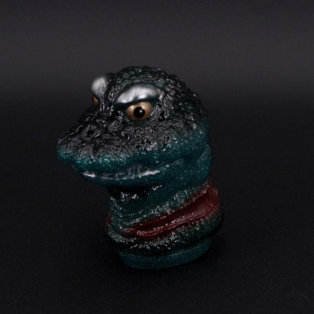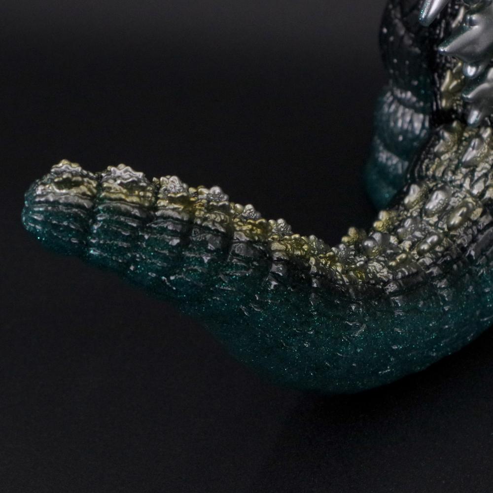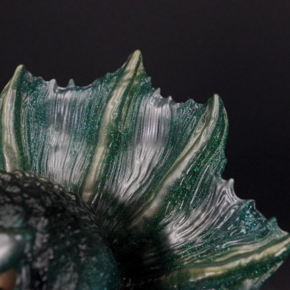 今回は、眩いグリーンラメ入りのグリッター成型にブラックとメタリックカラーで彩色を加えた重厚なカラーリングでのお届け。