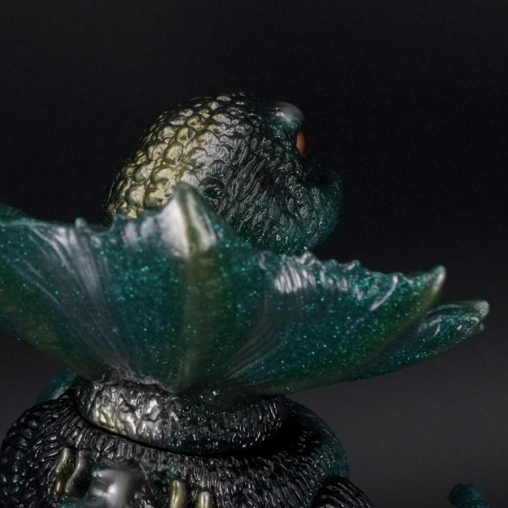 ひときわ目を引く大きなエリ巻きや独特な形状の背ビレ、精悍な中にも愛嬌を感じさせる表情といったジラースらしいポイントをディフォルメを加えつつも見事に表現。