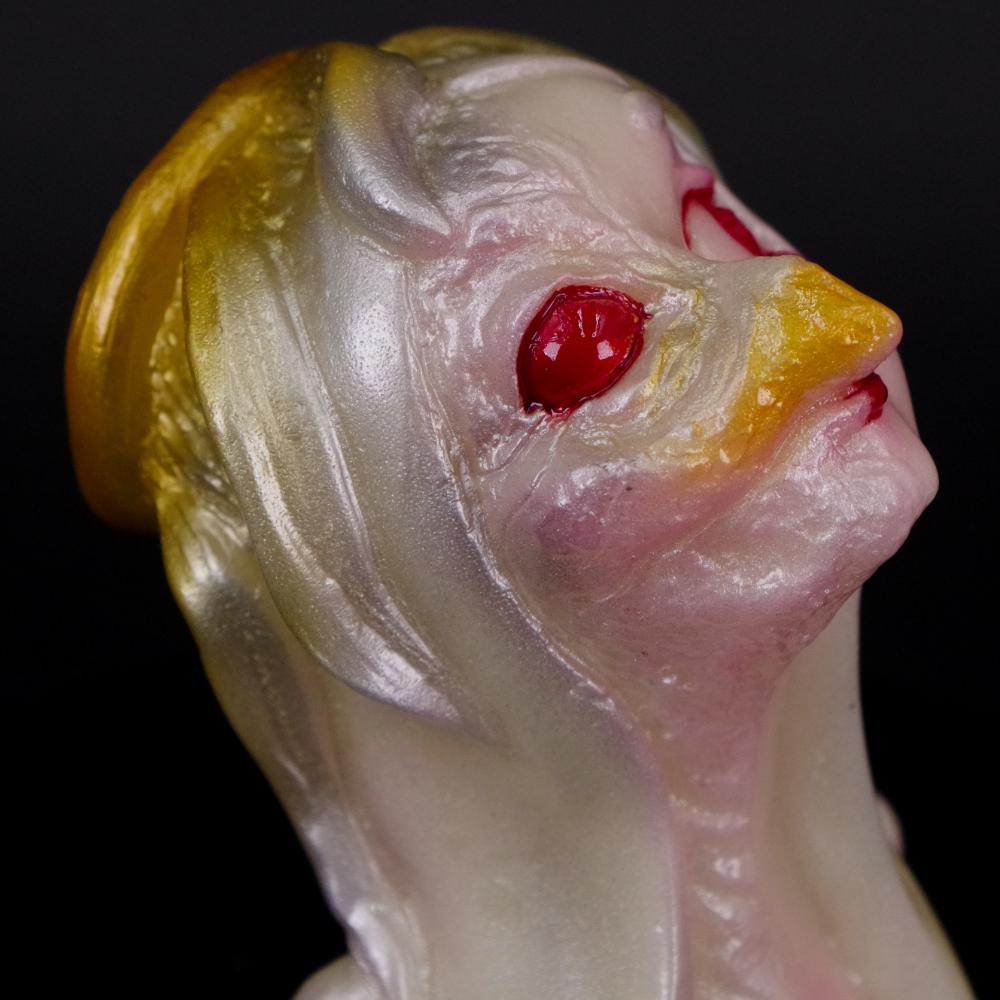 上半身のみの造形ながらも、ウロコで覆われた爬虫類のごとき異形さと水が滴り流れているような美しい質感の髪という相反する要素を巧みにまとめ上げた存在感抜群の逸品だ。