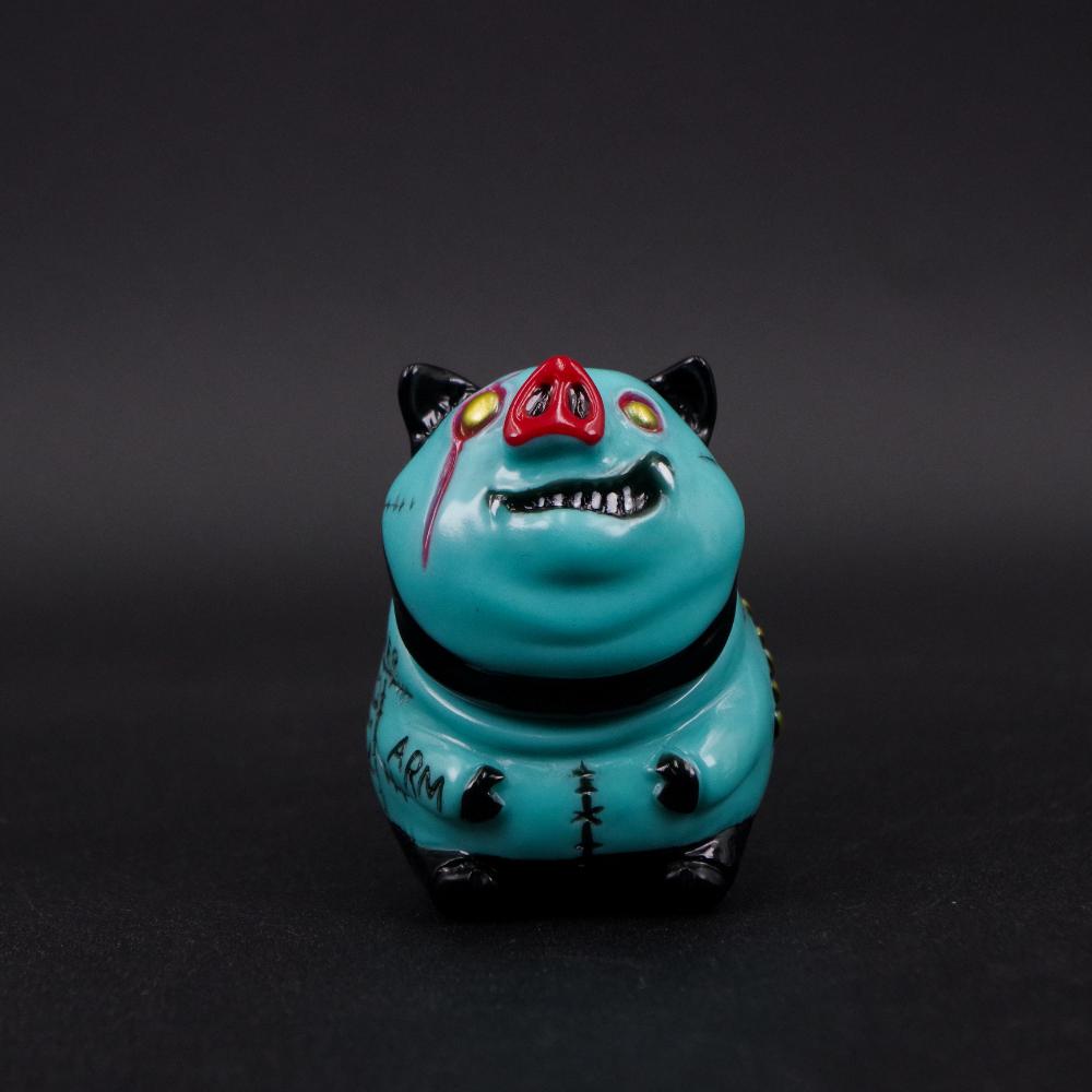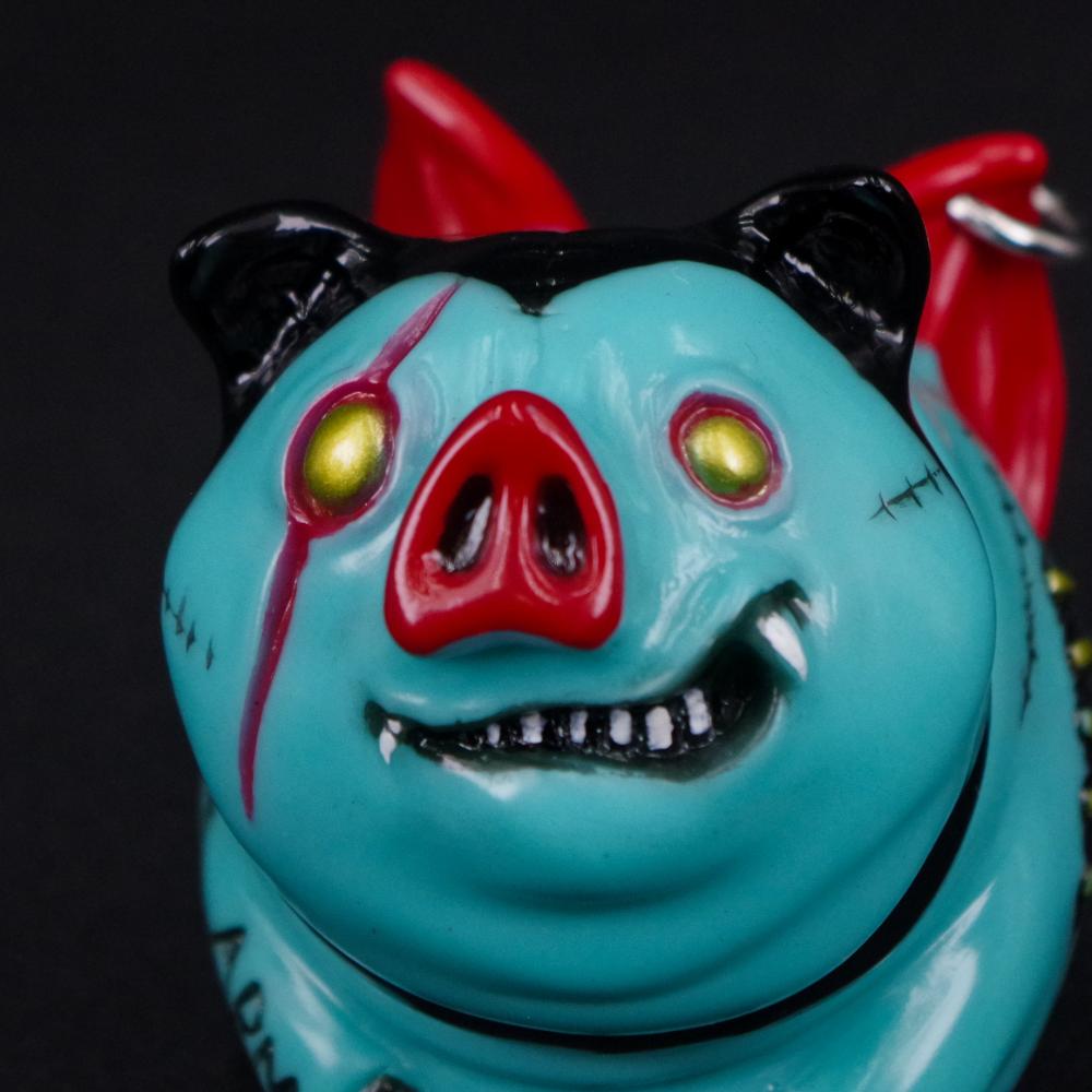 昨年墓場の画廊中野店で開催された《KAGEMARU Nightmare2024》でデビューを飾った「ブヒー」は丸々としたフォルムの身体に細やかな縫い目を施し各部に食用豚でおなじみの部位名を刻んだ遊び心がファンの好評を博す一作。