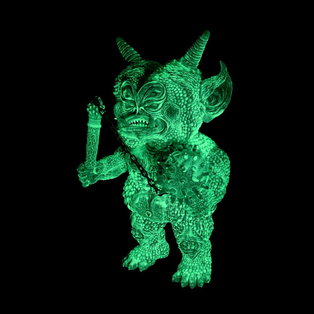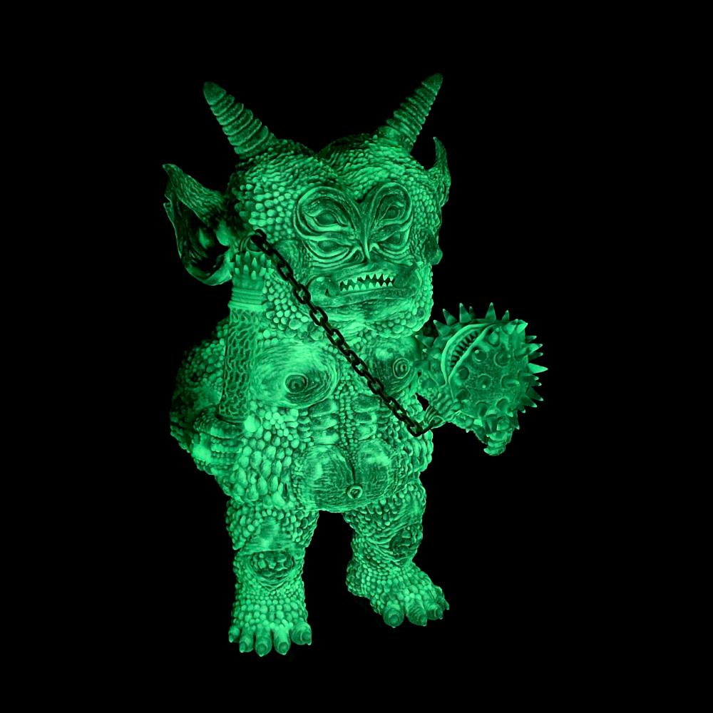 ドリルのような角や大きな四つ目の顔、丸くボコボコとした全身を包む皮膚など生々しいディテールで埋め尽くされた造形は圧巻の一言。