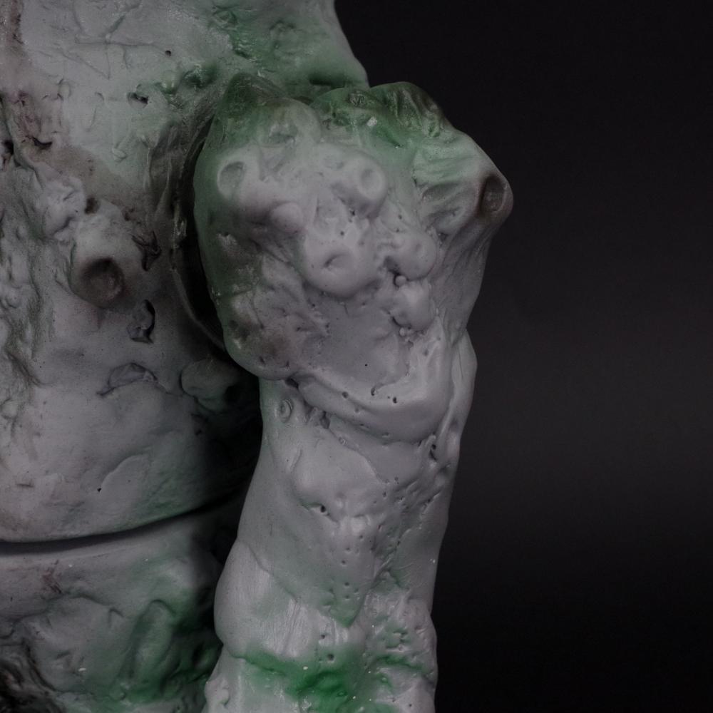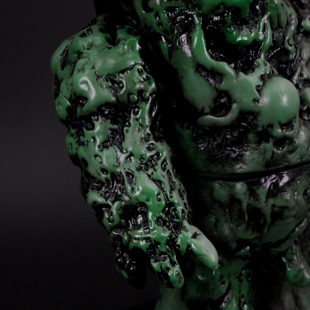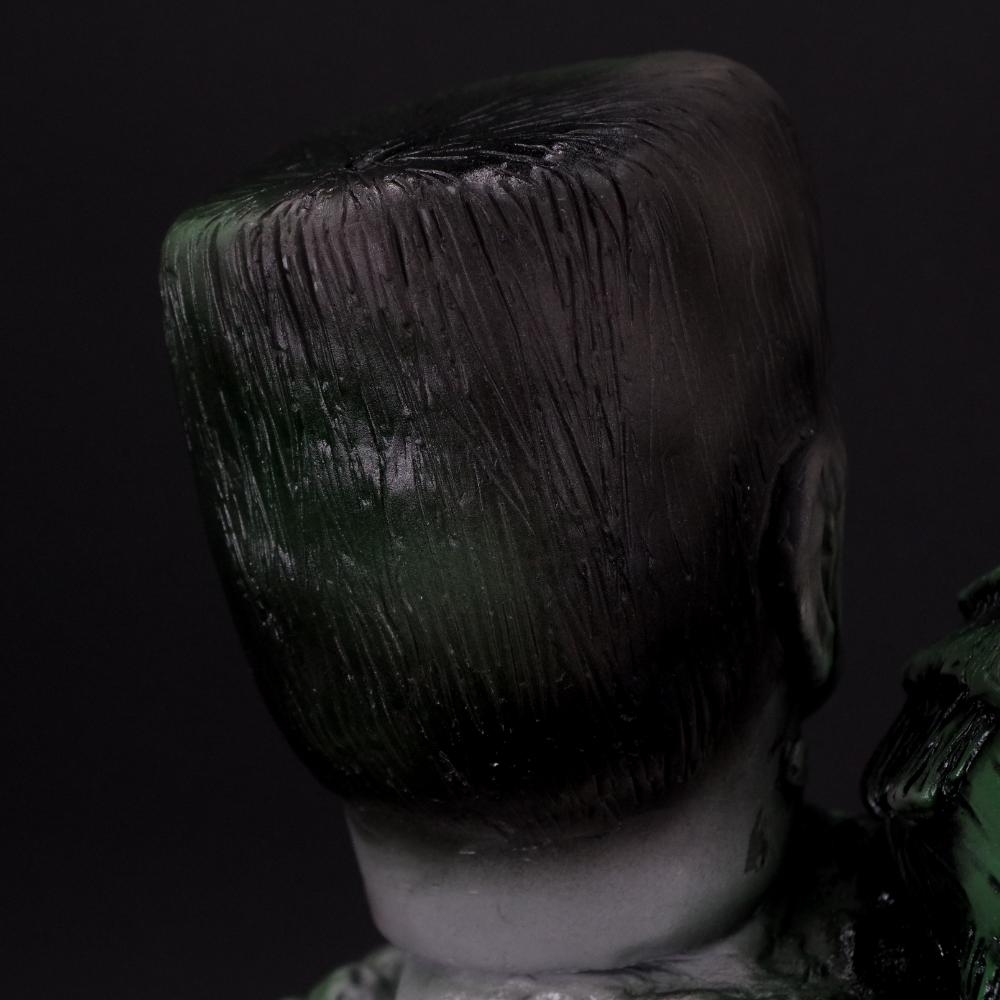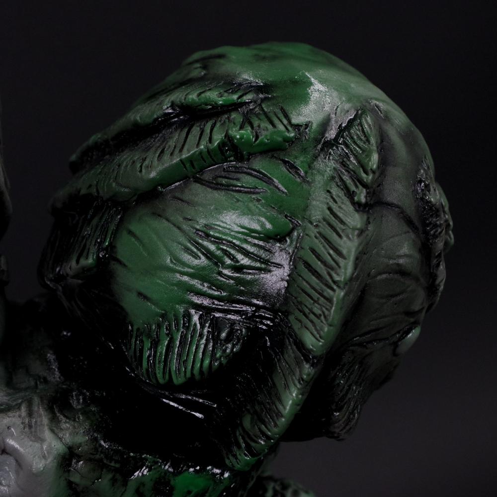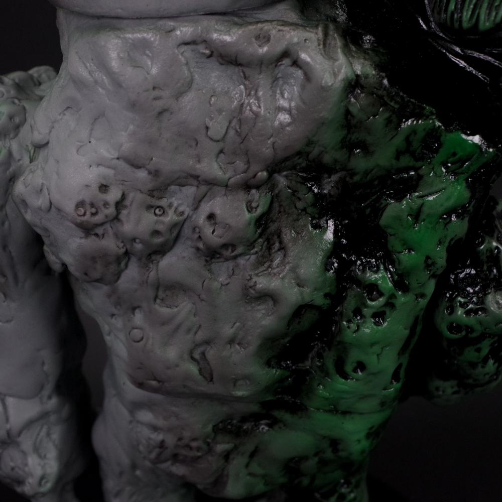 氏特有の手原型で作られたごつごつとしたダークな造形を、グレーとグリーンの彩色の上から黒の拭き取りを行うことでシンプルなカラーリングながらもインパクト抜群にまとめあげた逸品だ。
