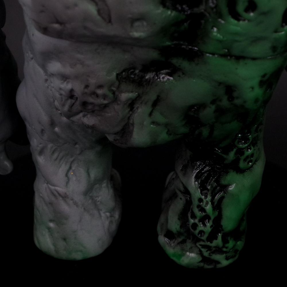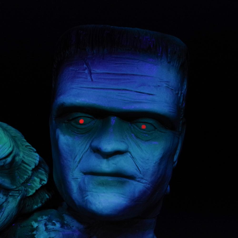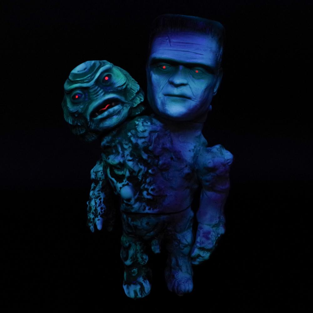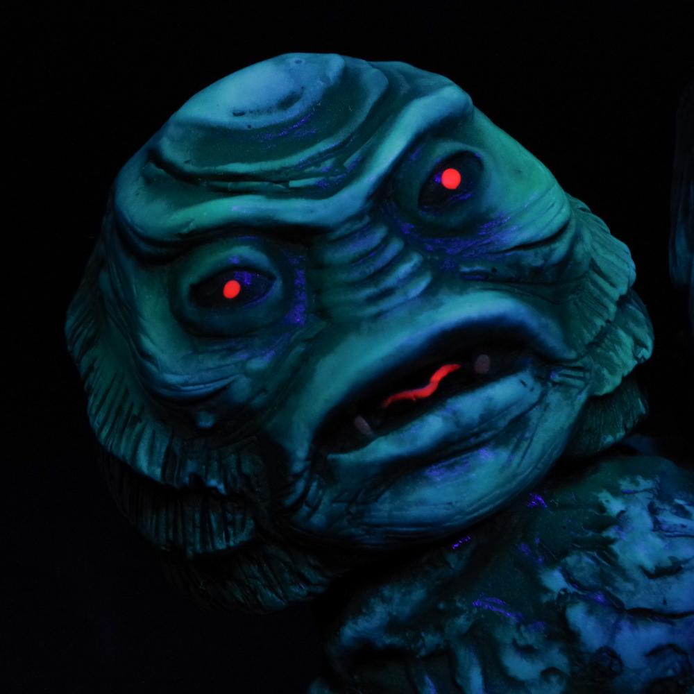 目には蛍光塗料も使用し、ブラックライトで怪しく光る姿は怪物らしさが一層際立つので是非お試しあれ。