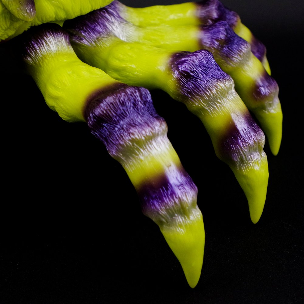 黄緑色の成型を活かしメタリックパープルを重ねて彩色することで、シンプルながらも実に目を惹く力強いカラーリングとなっている。