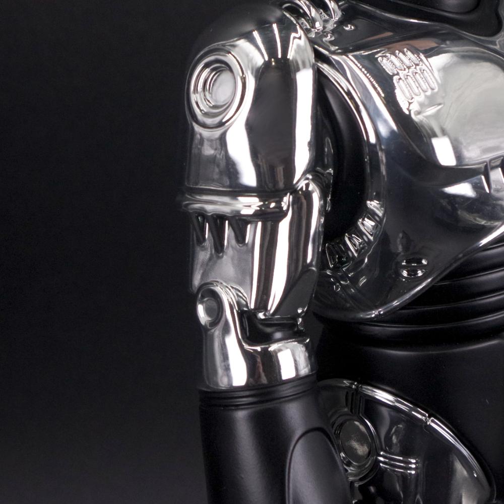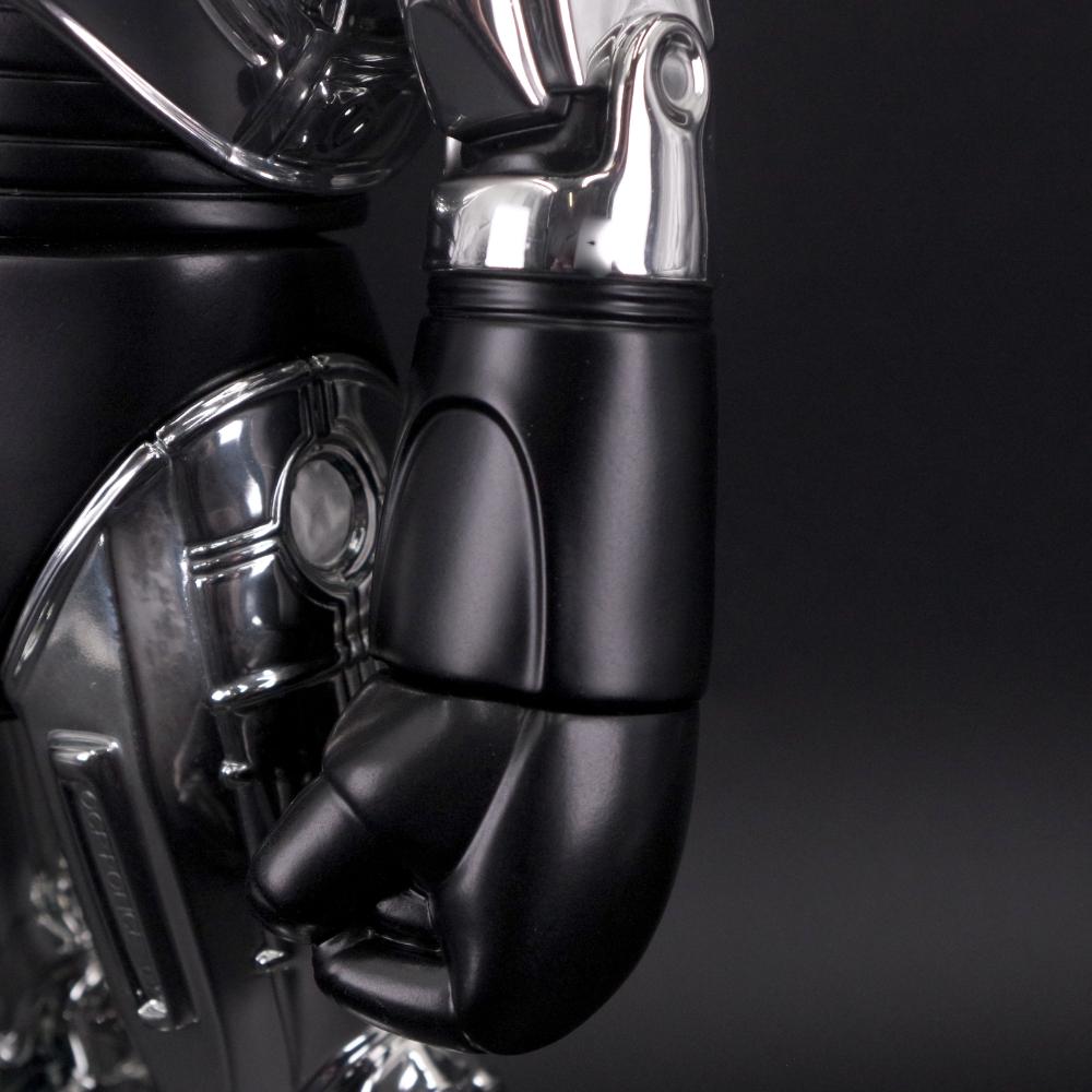 全身に施されたクロームメッキの美しい輝きとアクセントのマットブラックが相まって、劇中さながらの存在感を醸し出しているのに注目してほしい。