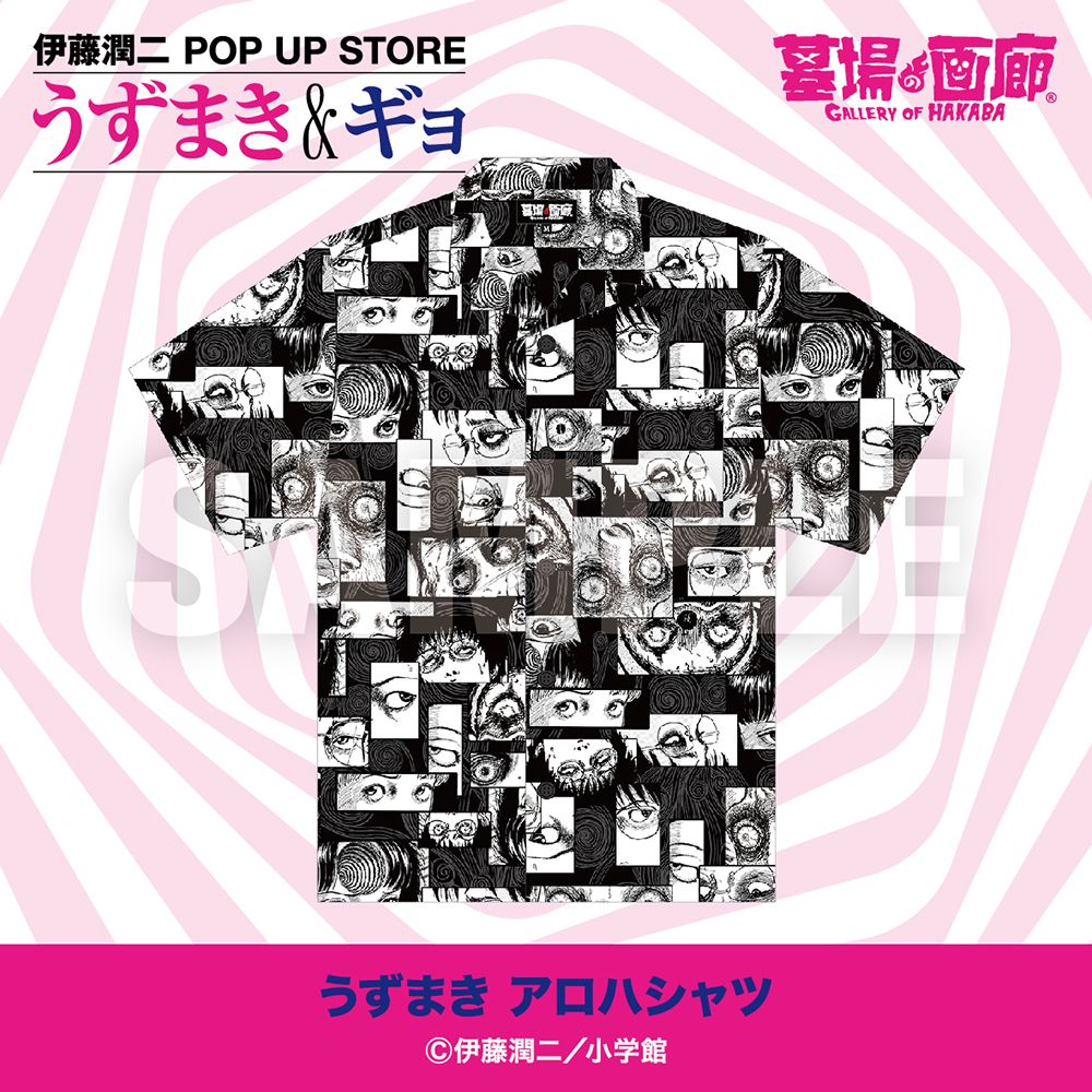 作中に登場する様々な「渦」と登場人物たちの「表情」をコラージュ的に散りばめ、まさに全身で「うずまき」を体感できる怪奇アロハシャツ!