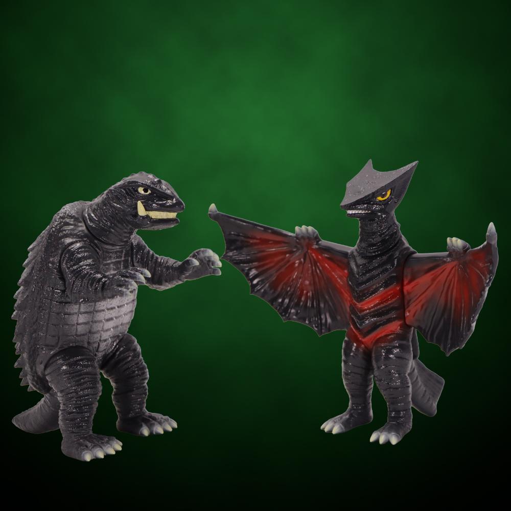 1967年に公開された映画『大怪獣空中戦 ガメラ対ギャオス』で活躍した2体の人気怪獣を全高約12㎝の手ごろなサイズでソフビ化した両作。