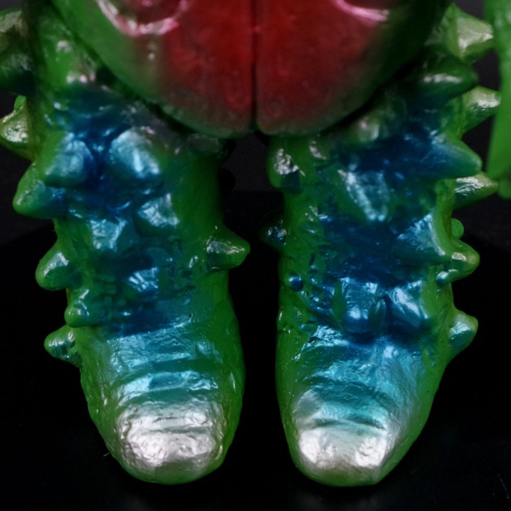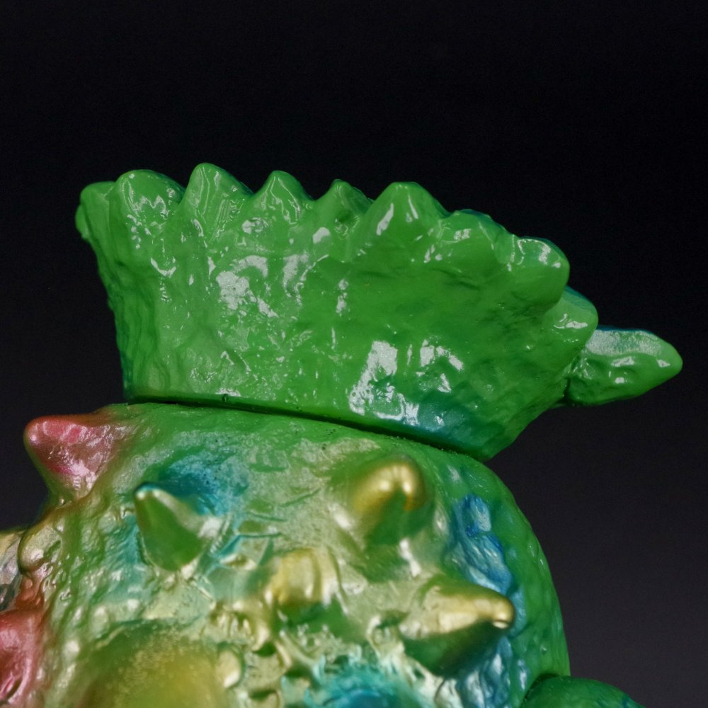 本放送当時に販売された製品のイメージを踏襲した前面に対し、背面のトゲをよりカラフルに彩ることで劇中のイメージも加えた仕上がりに注目してほしい。