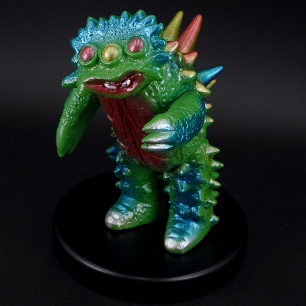 三つの目が並ぶ頭部を上向きに造形することで、劇中で印象深い飛行時の姿としても遊べるアイディアが秀逸なアイテムだ。