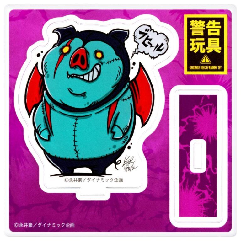 限定ソフビにもラインナップした「ブヒルマン」のアクリルスタンドは、不敵な表情と「ブヒール」の決め台詞に加え「警告玩具」のロゴが目を引く存在感抜群の一品だ。