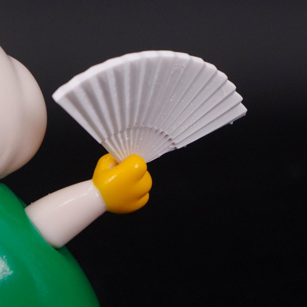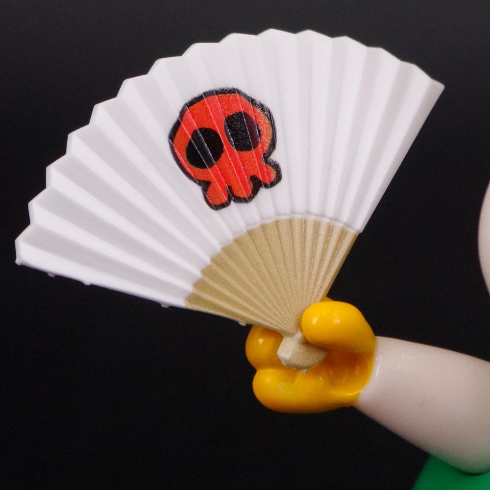 イメージを尊重した色使いはもちろん、薄さにこだわり3Dプリンターで出力された扇子にはトレードマークのドクロがUVプリンターで施された仕様でのお届けとなる。