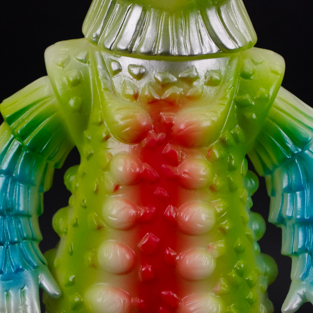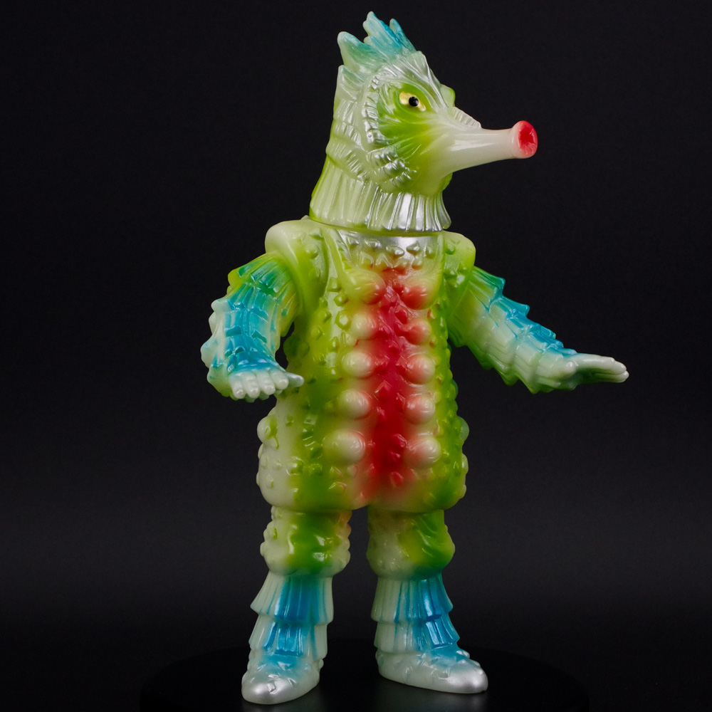 昭和のブルマァク製品をアレンジして華やかにまとめつつも、蓄光素材の肝となる暗闇での発光具合も両立した仕上がりとなっている。