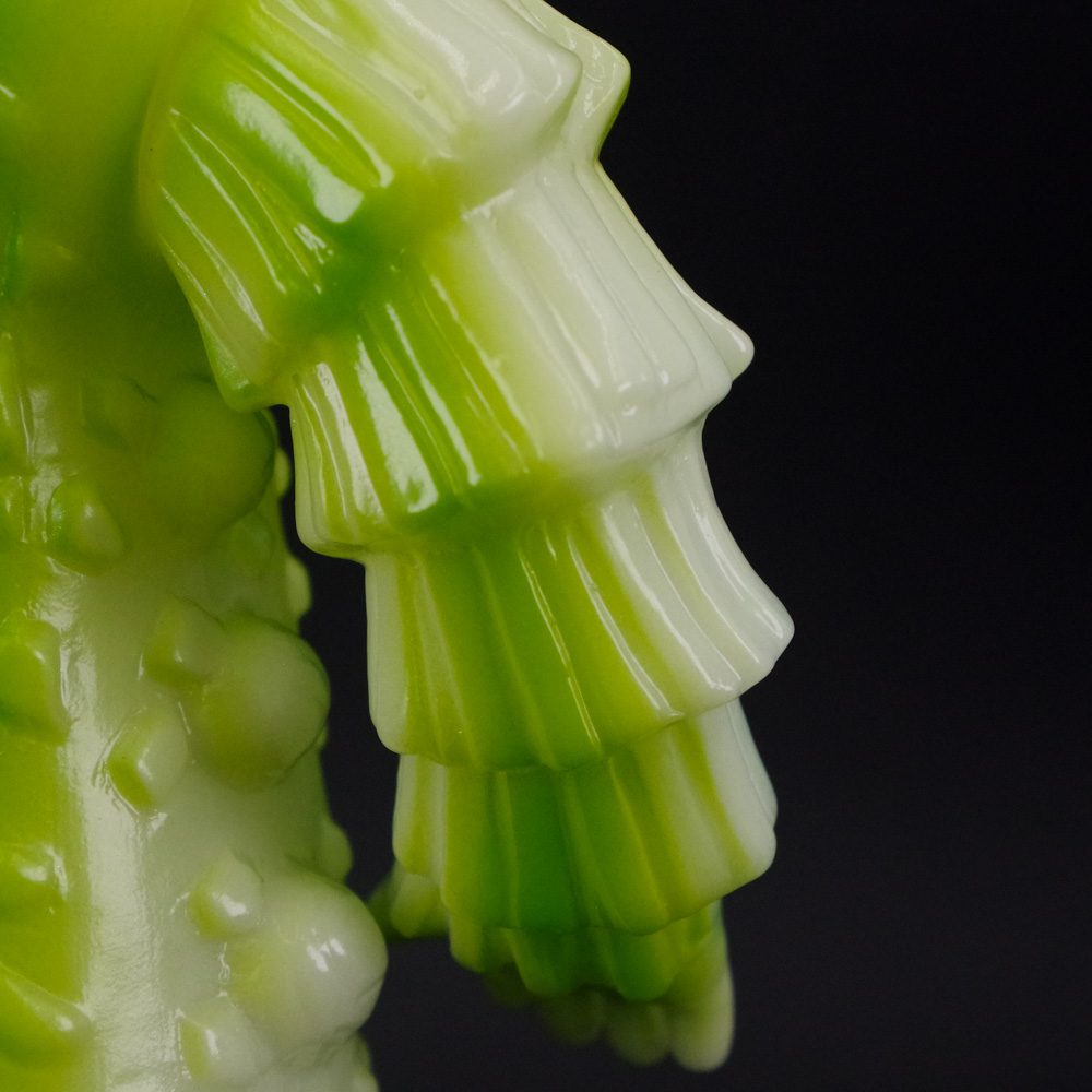 作中登場する2体の内(悪)の個体の特徴となる、険しい表情や腹部のコブ状突起といったポイントを見事に捉えた造形が人気の高い一作だ。