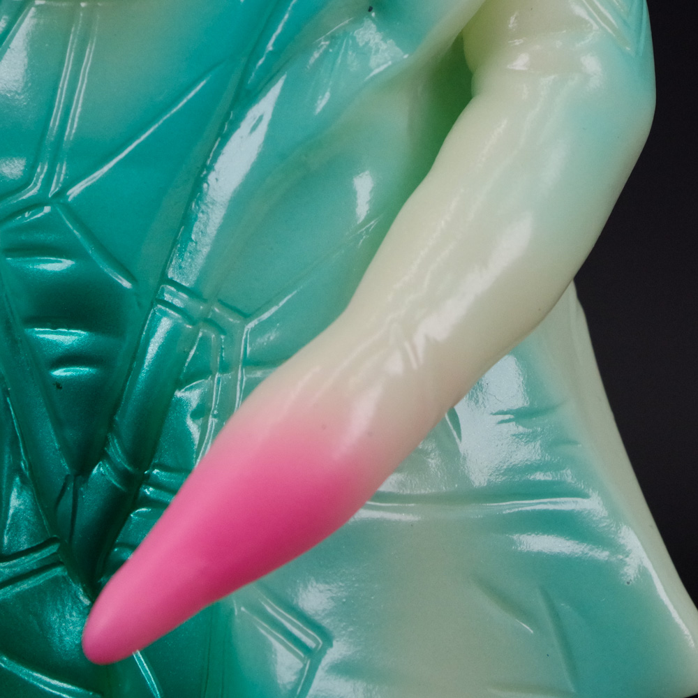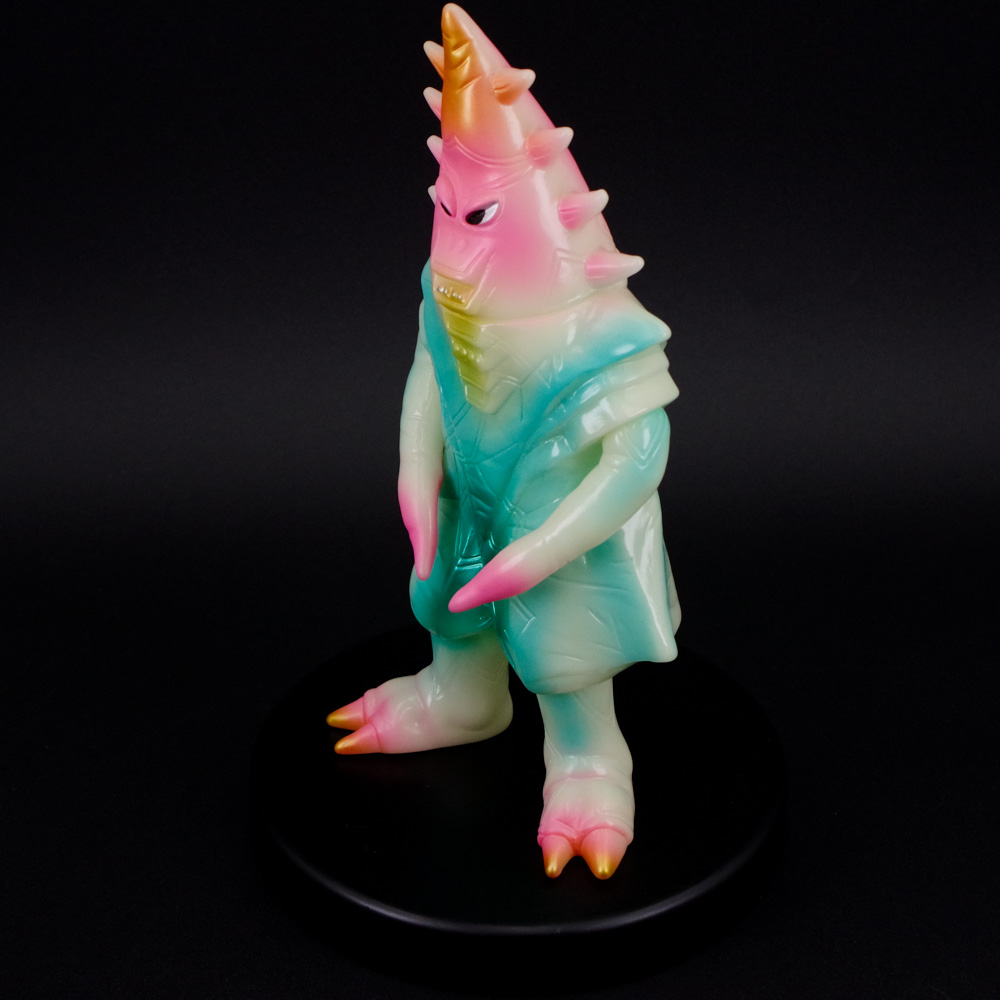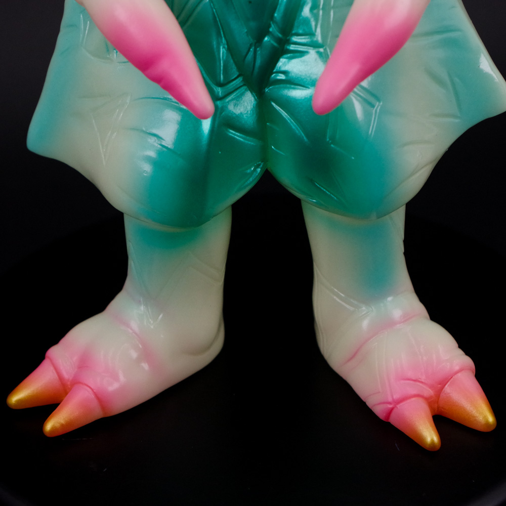昭和のブルマァク製品をアレンジして華やかにまとめつつも、蓄光素材の肝となる暗闇での発光具合も両立した仕上がりとなっている。