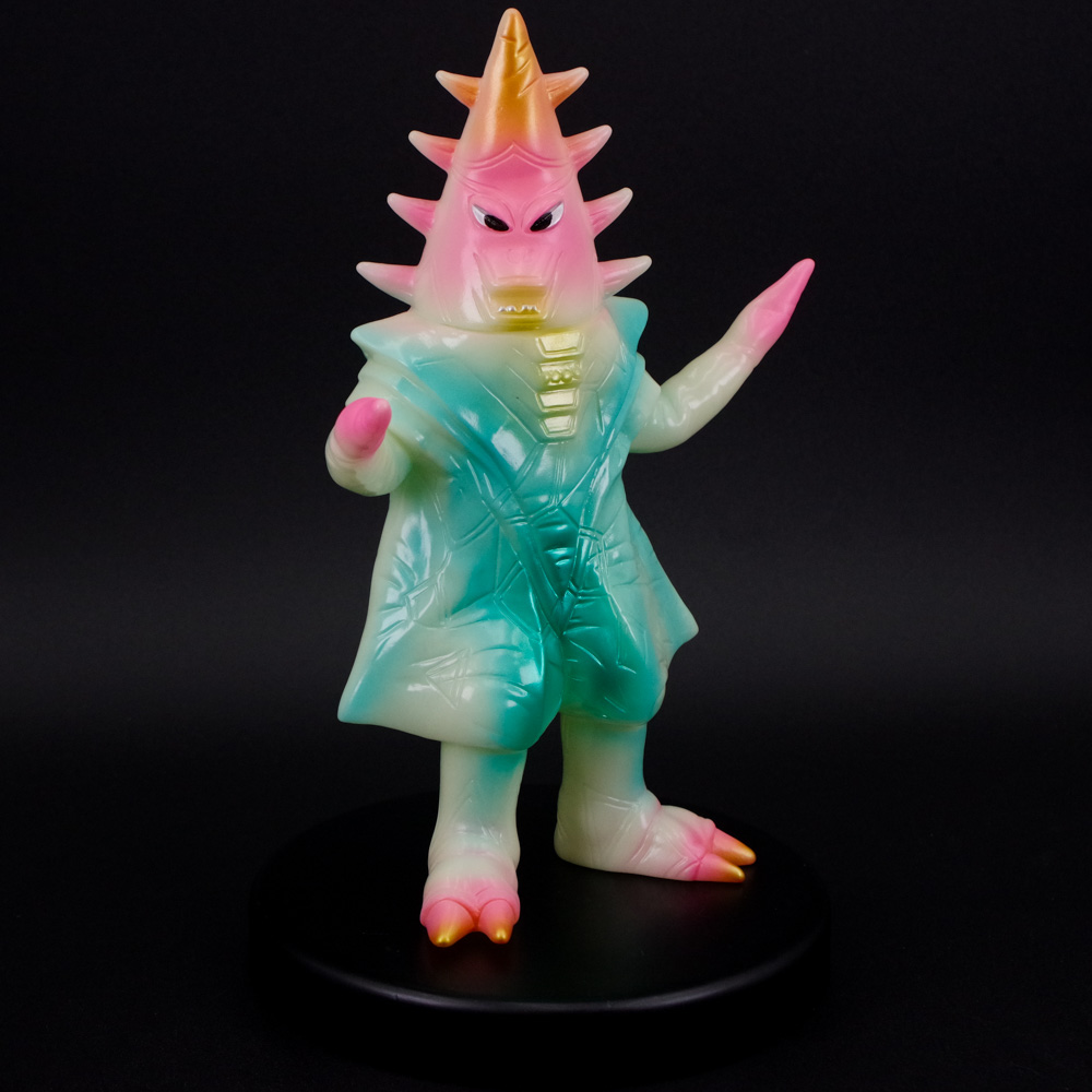 怪獣「ヤメタランス」の力で地球人を怠け者にして侵略を企てた「宇宙怪人」を、写実的なタッチでソフビ化し好評を博す本作。