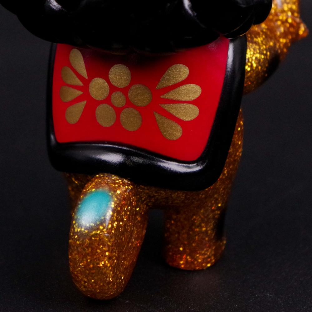 クリアー成型に限界までゴールドラメを充填したまばゆい輝きを放つ体を赤銅色や浅葱色で引き締めることで、神々しい雰囲気を演出した配色にも注目してほしい。