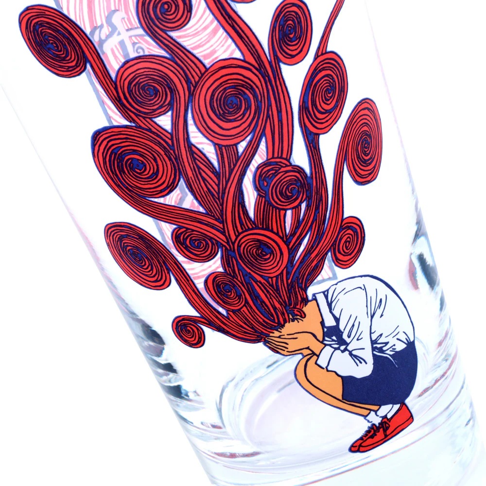 日常が「うずまき」に侵される不条理ホラーの傑作『うずまき』から、意思を持った五島桐絵の髪の毛が暴走する名場面をプリントしたロングタンブラーが登場。