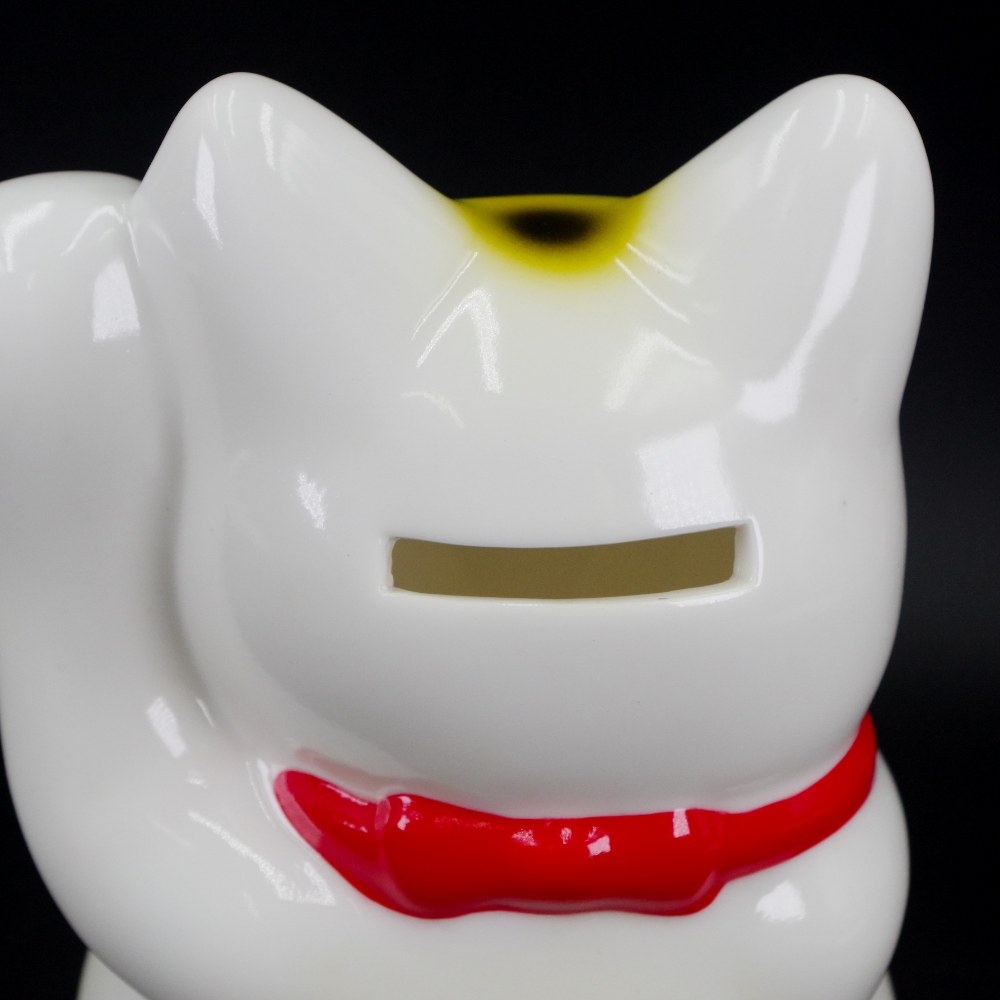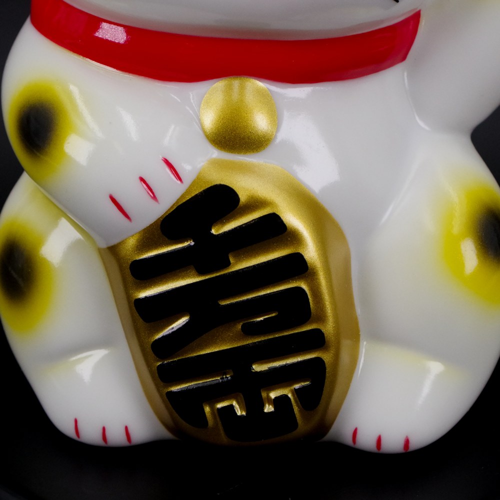 今作は白色成型に赤色と金色をはじめとする鮮やかな彩色と三毛猫の斑を施し、どこか懐かしさのある仕様でのお届け。