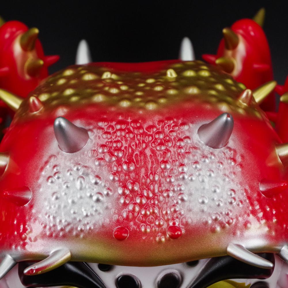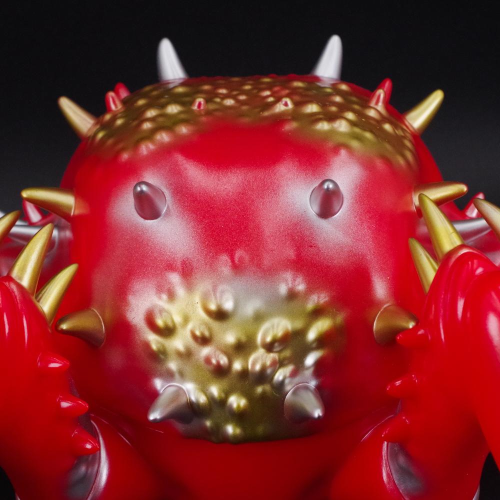 真っ赤なボディーに無数に生えた突起を金色と銀色で配することで、だるまらしさを演出した豪華絢爛な仕様でのお届け。