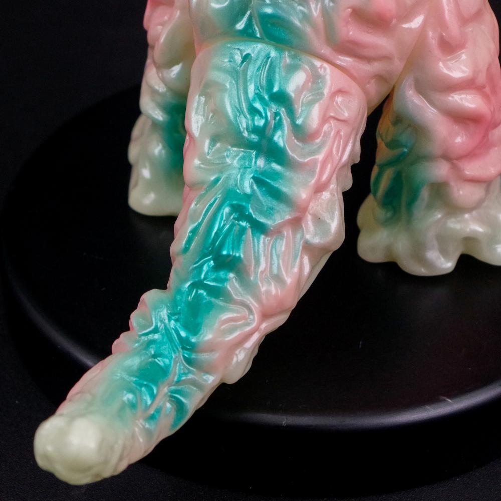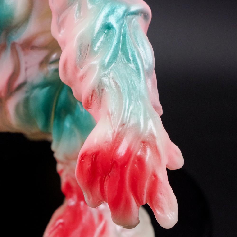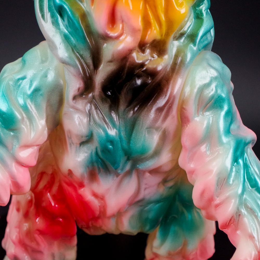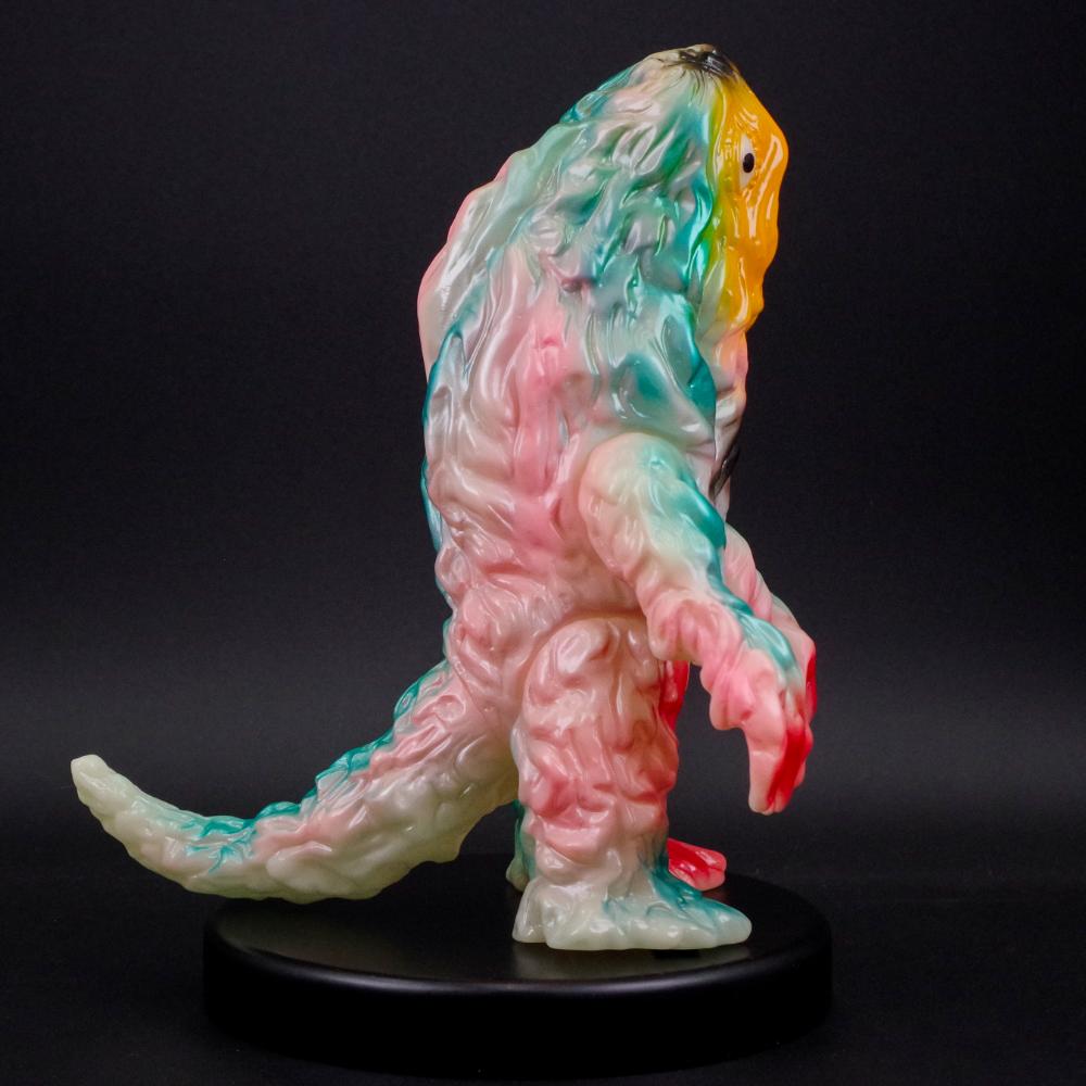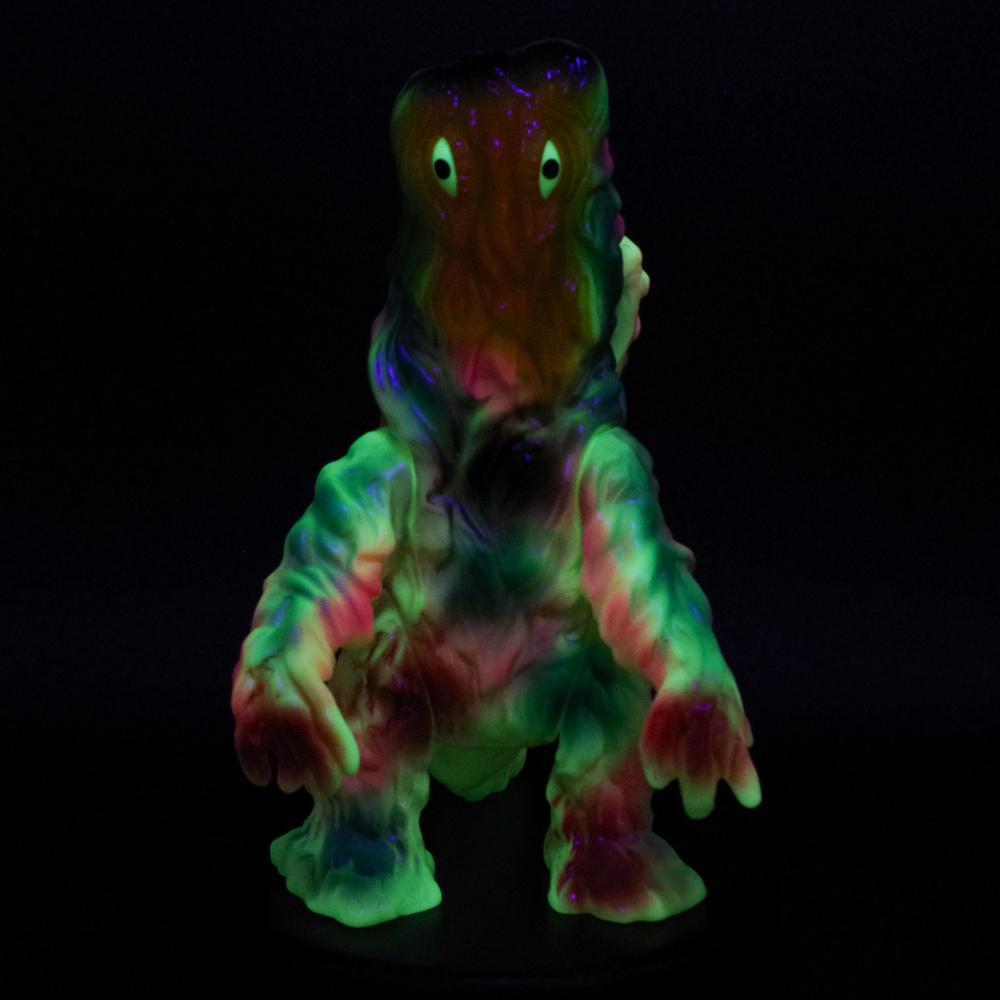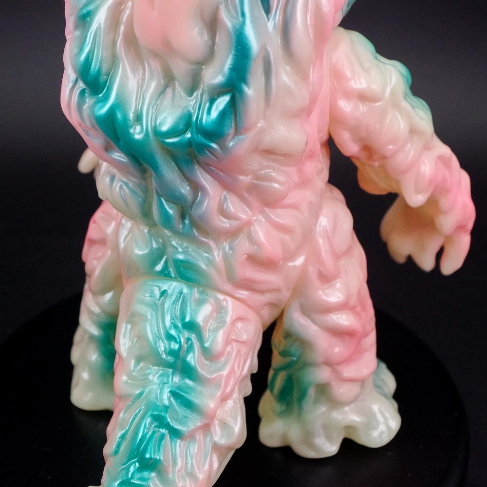 暗闇で怪しく光る蓄光成型に「ピンクヘドラ」の愛称で親しまれる海外輸出版の配色を落とし込んだ見事な仕上がりに、ブルマァク製品を知り尽くした氏ならではのこだわりを感じてほしい。