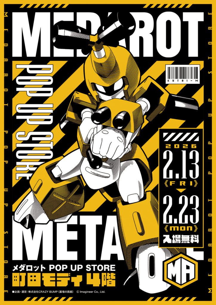 マンガ、アニメ、特撮などを始めとするサブカルチャーをテーマとした企画展を開催・運営している株式会社CRAZY BUMPは、2月13日(金)~2月23日(月)の期間で町田モディにて開催する【メダロット POP UP STORE】の情報を公開致します。