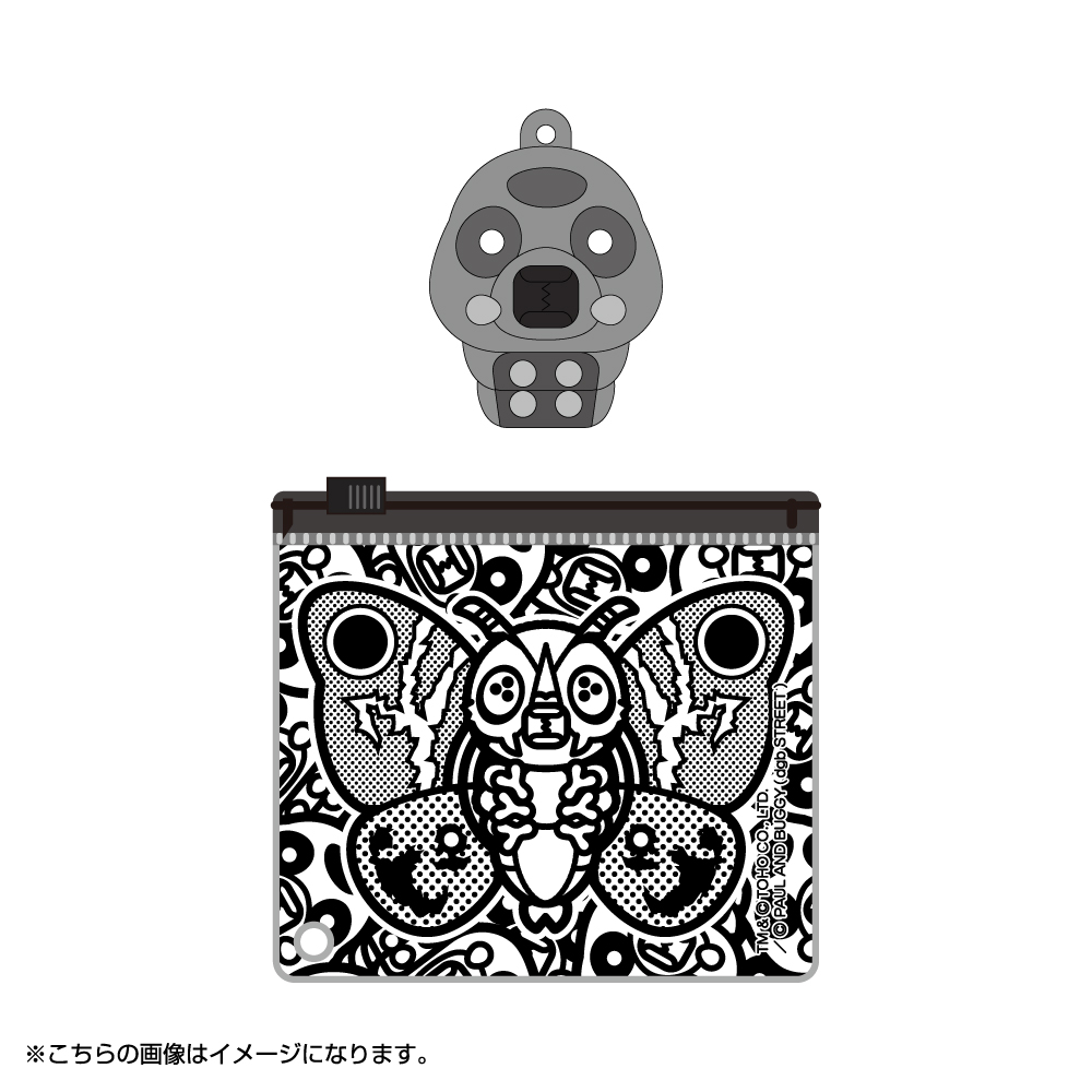それぞれ異なるカラーの幼虫たちは、親モスラがプリントされたオリジナルクリアポーチに収められ、まるで繭の中から成虫へと進化する瞬間を切り取ったかのよう…!?