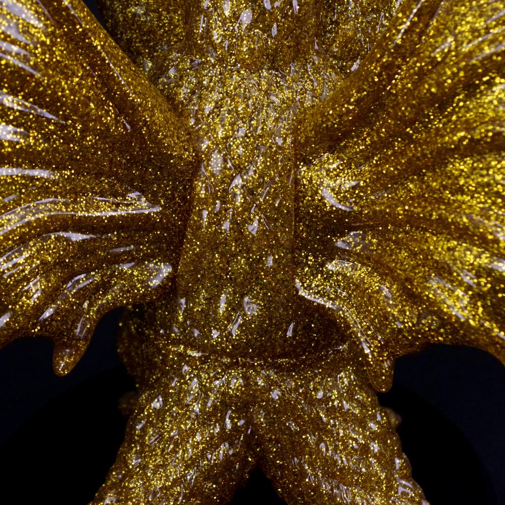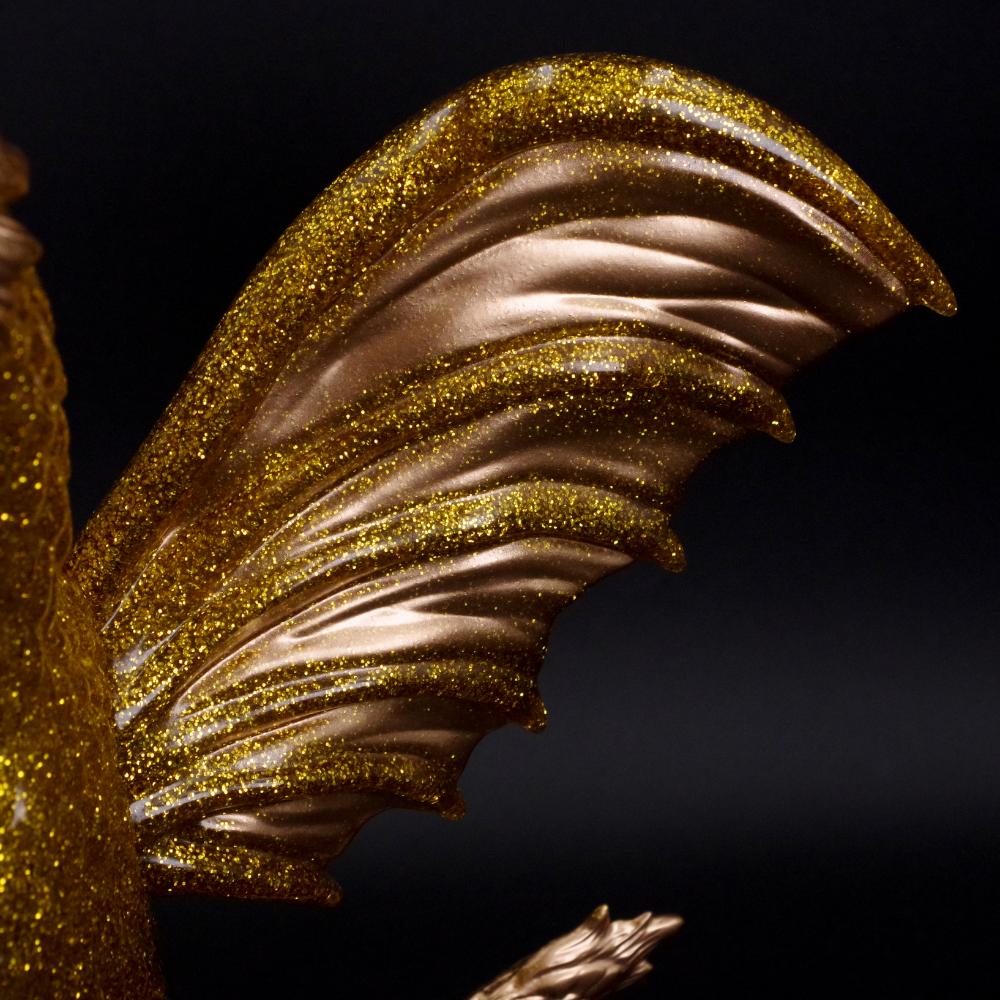 輝くラメ入り成型の上にゴールドの彩色を加えることで表現された、煌びやかな仕上がりにも注目してほしい玩具らしい魅力にあふれた一品だ!