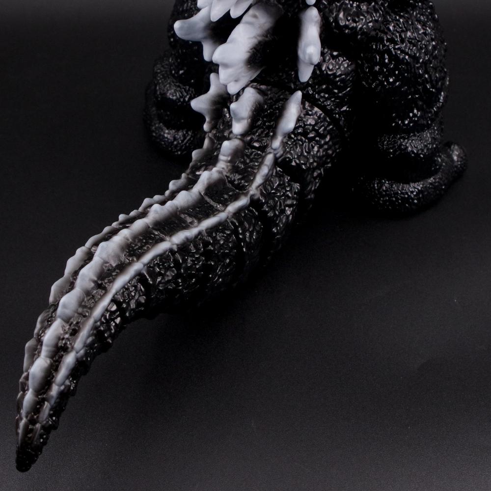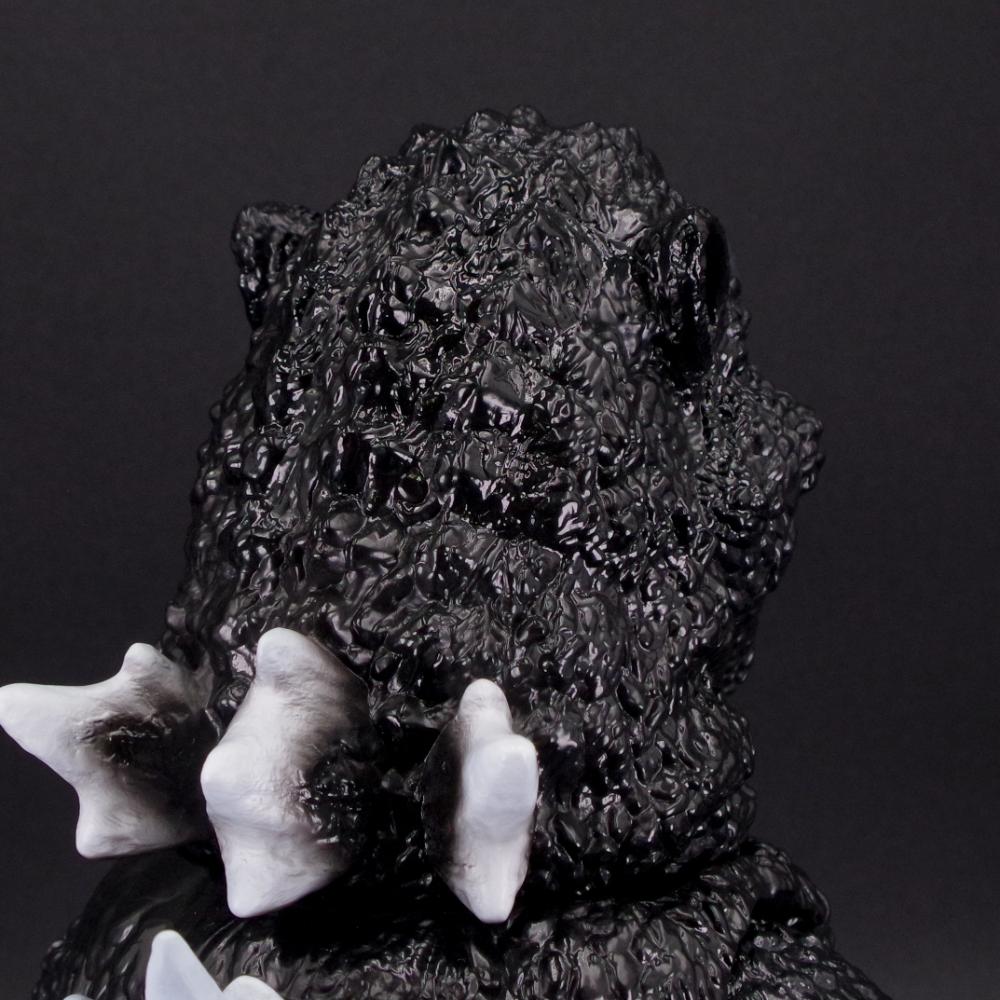 1954年公開の映画『ゴジラ』で猛威を振るった「怪獣王」に個性的なディフォルメを効かせソフビ化した一品。