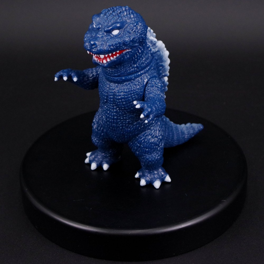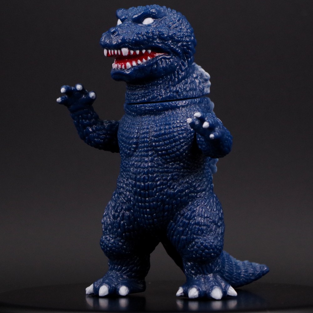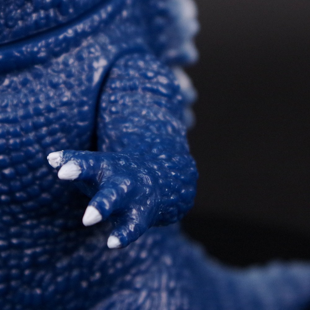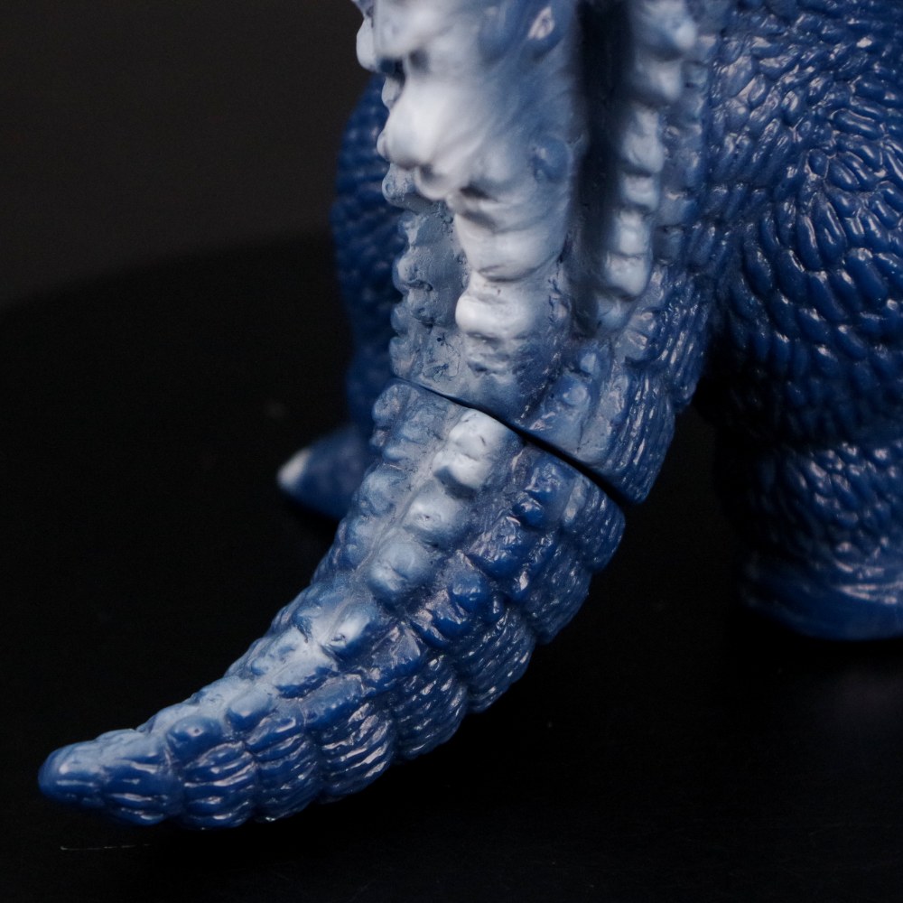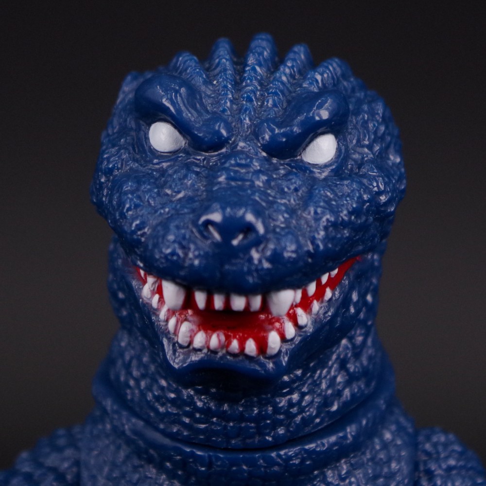 瞳のない不気味かつ凶悪な表情や、特徴的な背ビレといったポイントを的確に捉えた造形は正に必見。 レトロソフビで人気の高い濃紺成型色を活かした、シンプルながらも存在感たっぷりの仕上がりに注目してほしい。