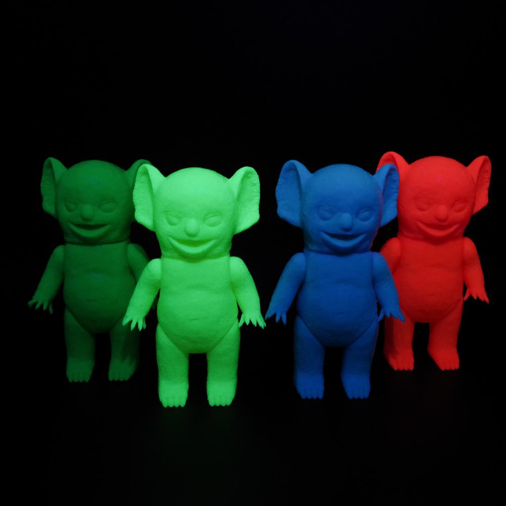 今回はピンク、ブルー、イエロー、グリーンの蓄光成型ボディのシンプルな素体でのお届け。