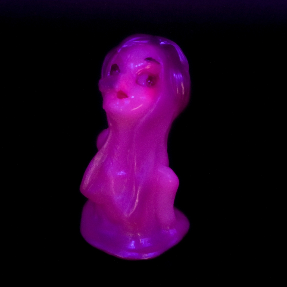 暗闇で怪しく赤く光る蓄光成型を活かすことで、通常時と発光時の双方で異なる妖艶な雰囲気を味わうことができるのに注目してほしい。
