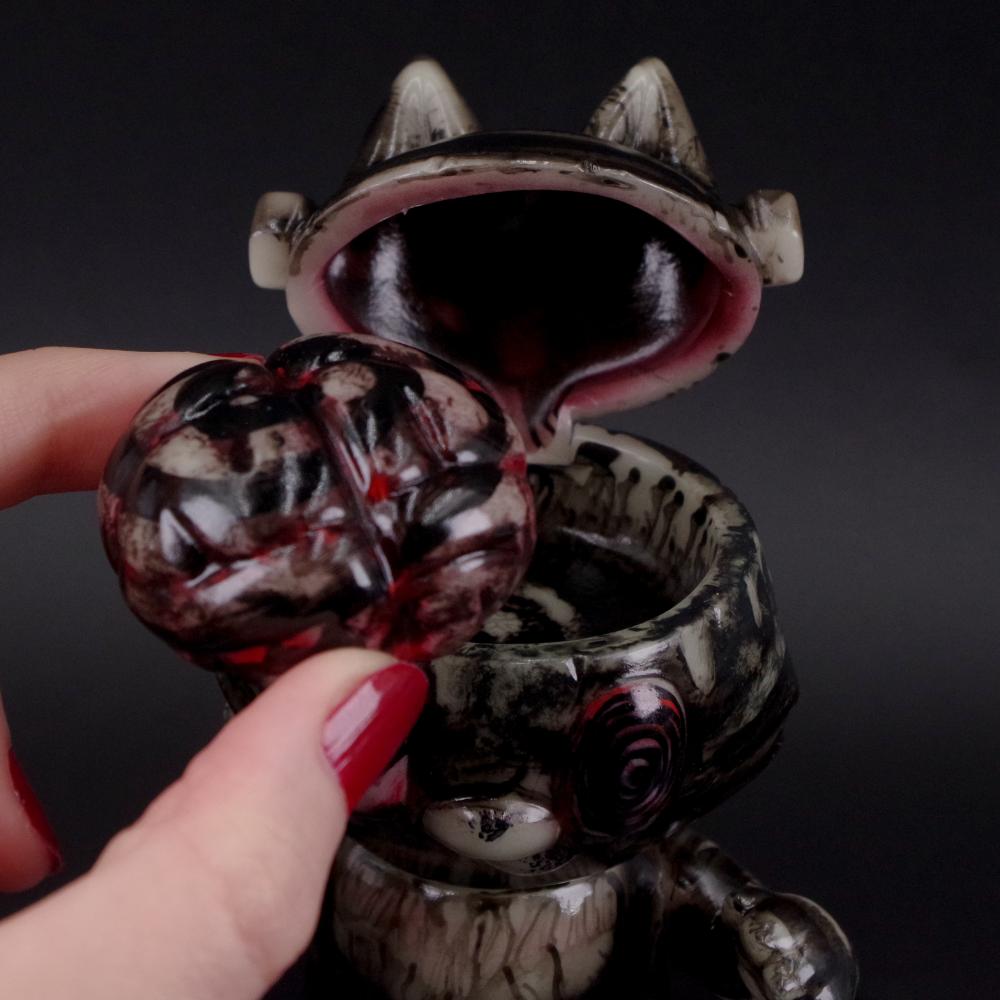 今回は脳みそと脳髄を垂れ流す墓から蘇生した狼という独創的なデザインで多くのファンを獲得したキャラクターを、蓄光成型にブラックとレッドのシンプルな汚し塗装でダークなイメージに仕上げた怪作。