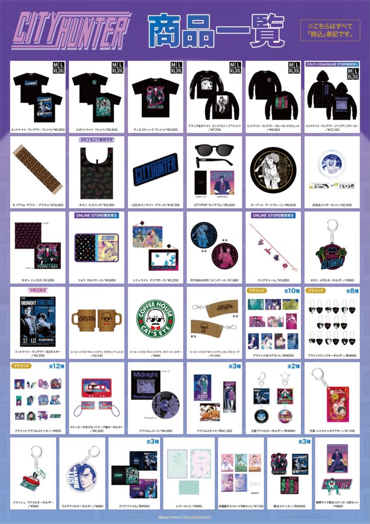 今回のタイトルは【CITY HUNTER POP UP STORE -Midnight Rendezvous-】(ミッドナイト・ランデヴー)。作品の舞台となった80年代の新宿を彩った街の喧騒や、ナイトクラブが生み出すネオンやミラーボールのまばゆい光と高揚感溢れる都会的な音楽。それらが交差する真夜中のアーバンライフをテーマに展開します。