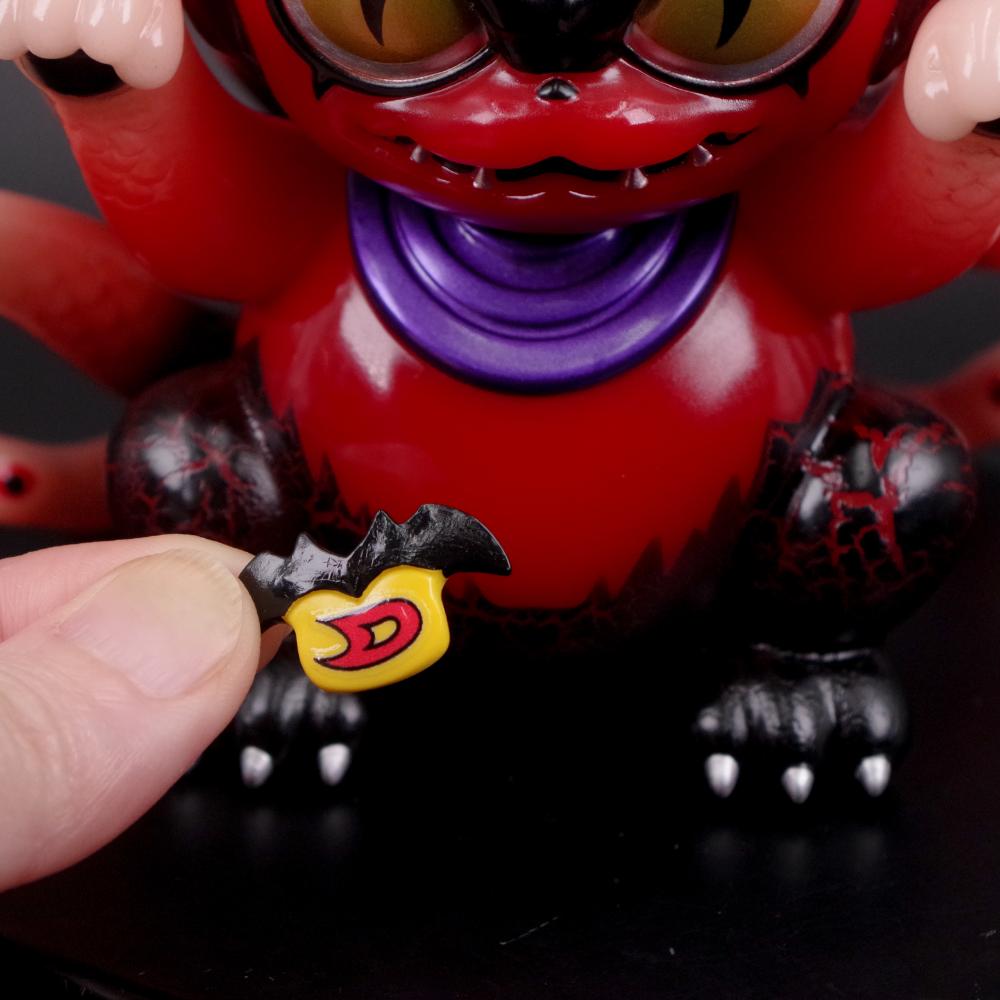 蛇そのものの九本尻尾を備えた猫、という異形さと愛嬌を兼ね備えた姿はそのままに、デビルマンらしいコウモリ型ヘッドとマグネット内蔵の『D』ロゴバックルを新たに造形。
