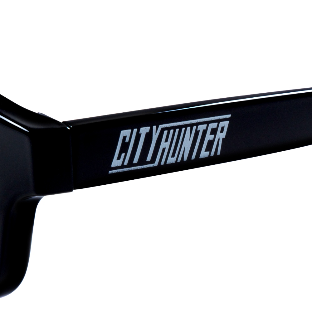 誰でも使いやすいシンプルなウェリントンタイプのシルエットに、テンプル(つる)部分に『シティーハンター』のロゴがさりげなく入ったオリジナル仕様。