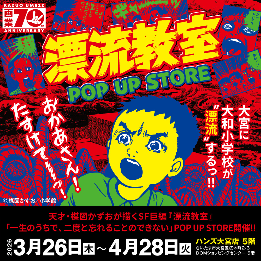 2026年3月20日イベント出店「おかあさん!!たすけて!!」天才・楳図かずおが描いた時空を超えた少年SF巨編『漂流教室』POP UP STOREが大宮で開催決定!翔が、大友が、咲っぺが、ユウちゃんが、そして関谷がハンズ大宮店に漂流する!?■UMEZZ